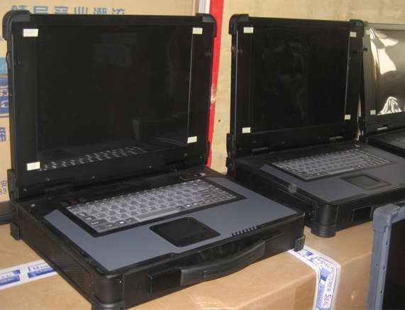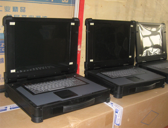 上翻式便携工控机 嵌入式工业主板 提供2个半长的扩充槽 15"高亮度LCD显示屏,分辨率:1024X768 88键键盘、触摸板