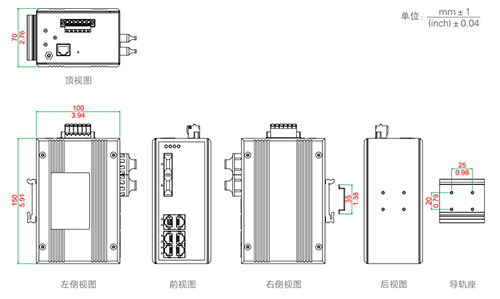 产品带导轨卡槽、导轨坐及挂耳,用户可以根据自己的需求,选择导轨式安装或者壁挂式安装,灵活的安装方式轻松满足多种工业应用场景。