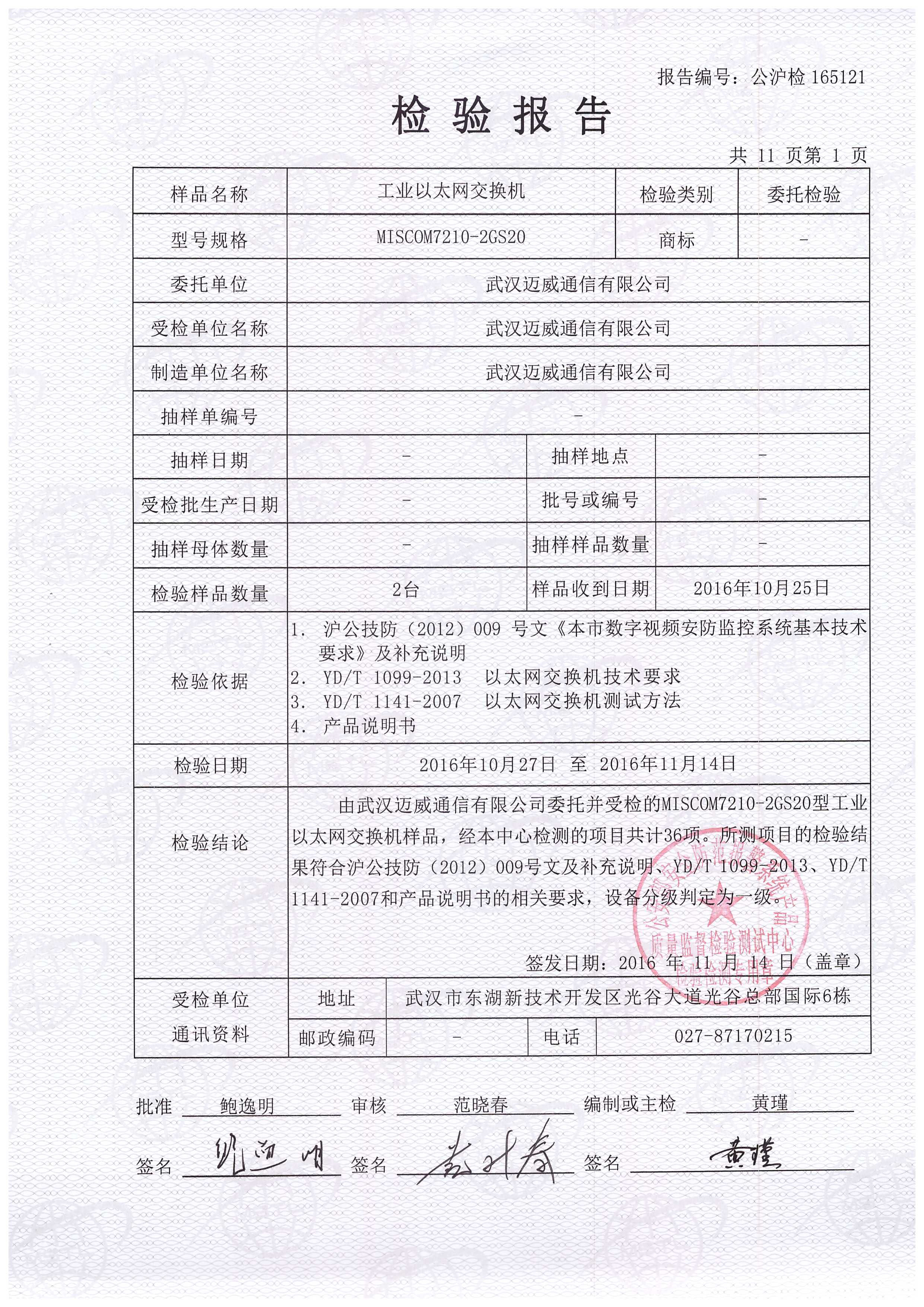 近日,我公司研制生产的MISCOM7210工业级千兆交换机在公安部安全防范报警系统产品质量监督检验测试中心经过长期严格的检验测试下,通过了所有检验标准。由于交换机在测试过程中性能卓越、表现优异,特被公安部分级判定为一级交换机。