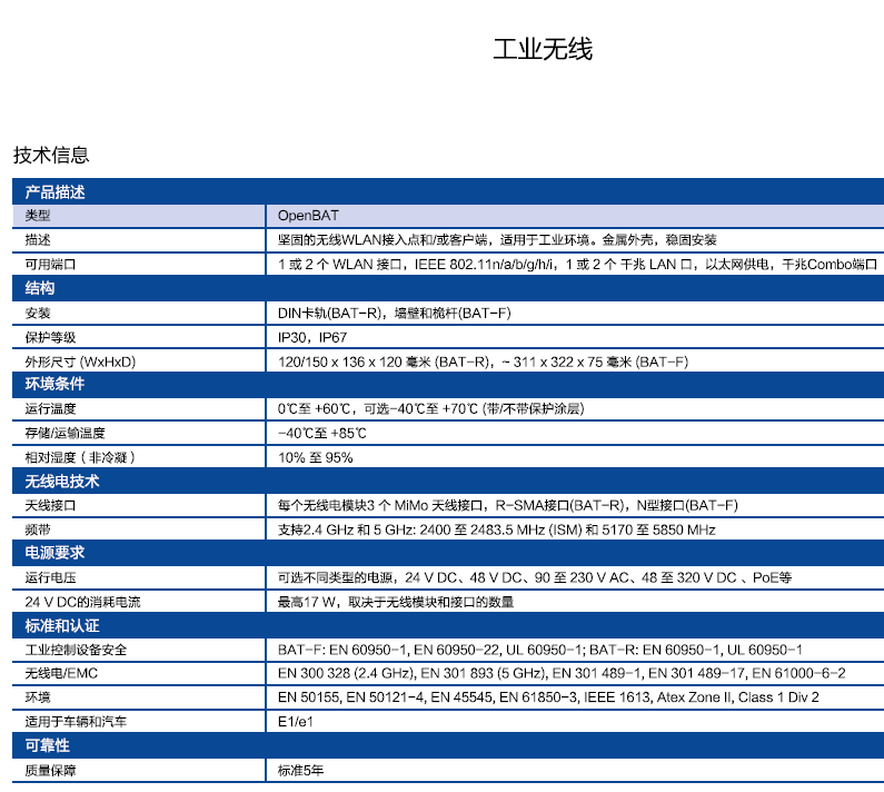 这些接入点可用作客户端、路由器和网桥,采用 IEEE 802.11ac 技术,向后兼容 a/b/g/n 标准。BAT867-R 采用加固型设计,确保符合具有挑战性的要求和批准,适用于苛刻的工业环境。