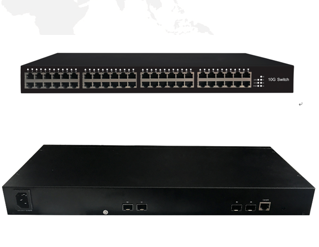 48个10/100/1000M自适应RJ45电口、4个集成万兆SFP+光口;背板带宽300G |