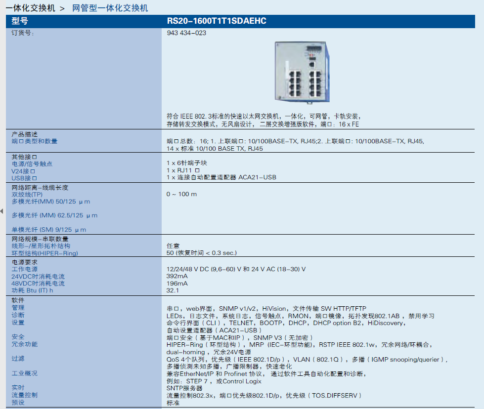 赫斯曼交换机RS20-1600T1T1SDAEHC