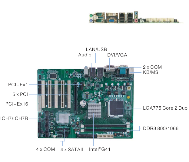 · Intel G41 + ICH7/IC7R, FSB 800/1066/1333MHz