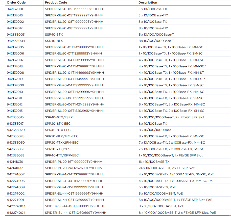 赫斯曼工业交换机Hirschmann入门级SPIDER Il Family