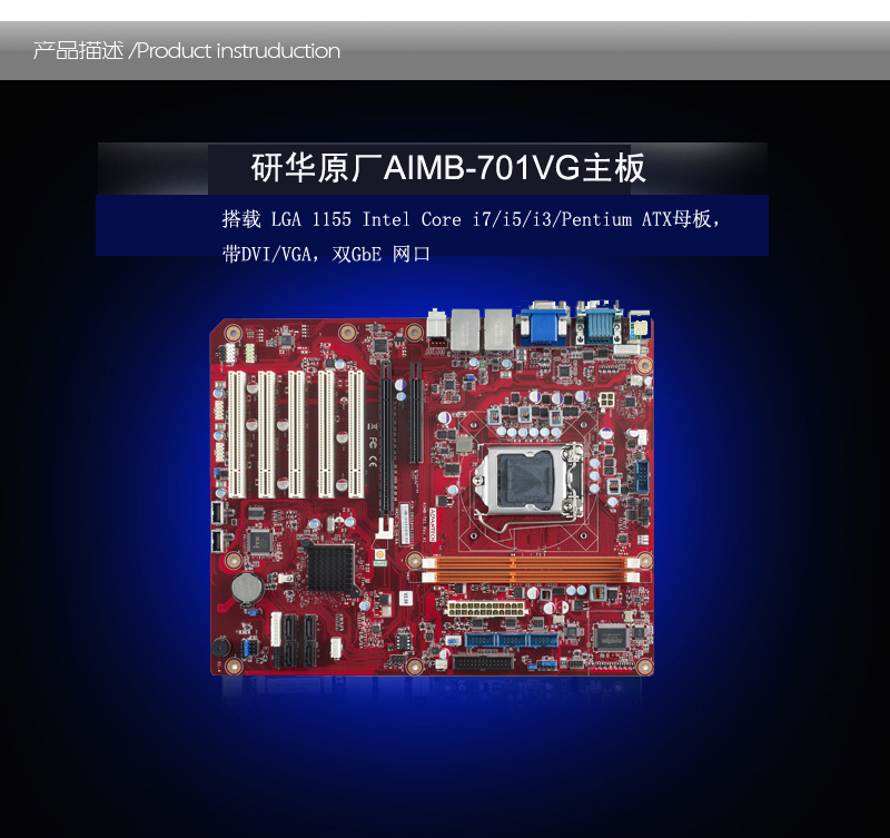 研华主板AIMB-701 LGA 1155 Intel Core i7/i5/i3/Pentium ATX母板,带DVI/VGA,双GbE 网口