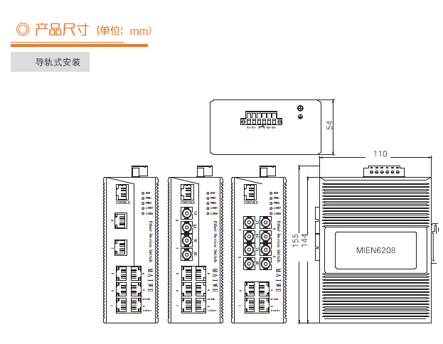MIEN6208系列即插即用网管型冗余以太网络交换机。此系列支持MW Ring,冗余环网(自愈时间<20ms),增加网络可靠性。MIEN6208系列也适用于极端严苛工业环境应用,满足不同工业环境下的组网通信需求。