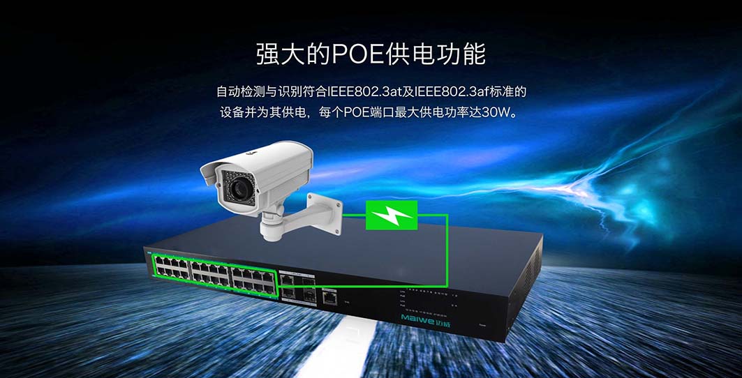 PoE端口可提供功率高达15.4W(af)或30W(at)的供电 |