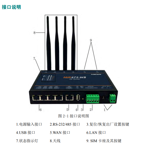 ■ 支持LED状态监测(显示电源、Run、Wi-Fi、4G网络连接状态和信号强度状态、WAN口连接、LAN口连接);