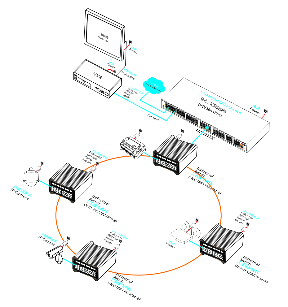 ◇ 导轨式工业级系列产品默认不配置电源,需要独立购买,建议选用ONV自主研发的电源,高冗余设计,提供长久稳定电力输出。