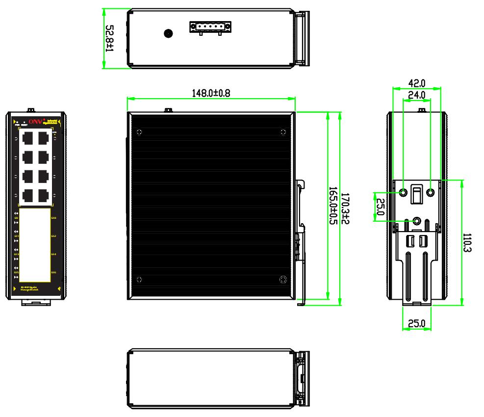 ONV-IPS33148FM工业级系列产品,完全遵循工业产品设计与用料,外壳采用铝合金增强散热效能,具备极佳的工业现场环境适应性(包含机械稳定性、气候环境适应性、电磁环境适应性等)、防护等级达到IP40、支持双冗余供电、低功耗无风扇散热技术、MTBF 平均无故障工作时间可达35 年、超长5 年质保。