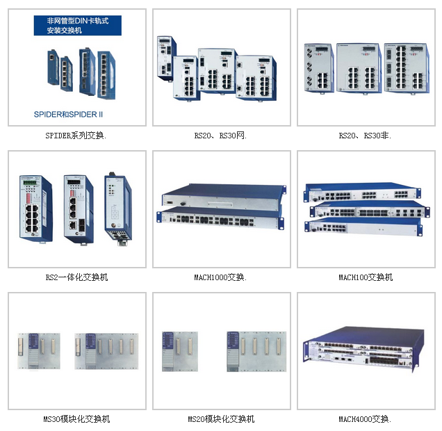 广泛的产品线——Hirschmann拥有业内最全的产品系列,包含光纤转换器、适于所有主要现场总线协议的现场总线中继器、网管型和非网管型以太网交换机(3-48端口),几乎不受限的铜缆/光纤端口组合、3层交换机、介质转换器、无线接入点/客户端/网桥、防火墙;VPN通道、深度包检验、网络管理软件(SNMP和OPC)。