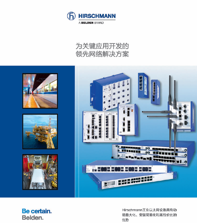 德国赫思曼自动化和控制有限公司是全球自动化通讯领域的领先企业,其工业以太网交换机在全球市场份额.赫思曼是目前工业以太网市场上唯一一家能够提供完整数据通讯产品的公司,产品线从以太网,快速以太网,千兆以太网和万兆以太网的网络设备扩展到应用于不同现场总线系统的网络连接件,光纤连接器,执行器及传感器插接件等.赫思曼进入工业以太网交换机市场比较早,其交换机产品在各行业都有广泛应用,其中电力和交通是其优势行业。