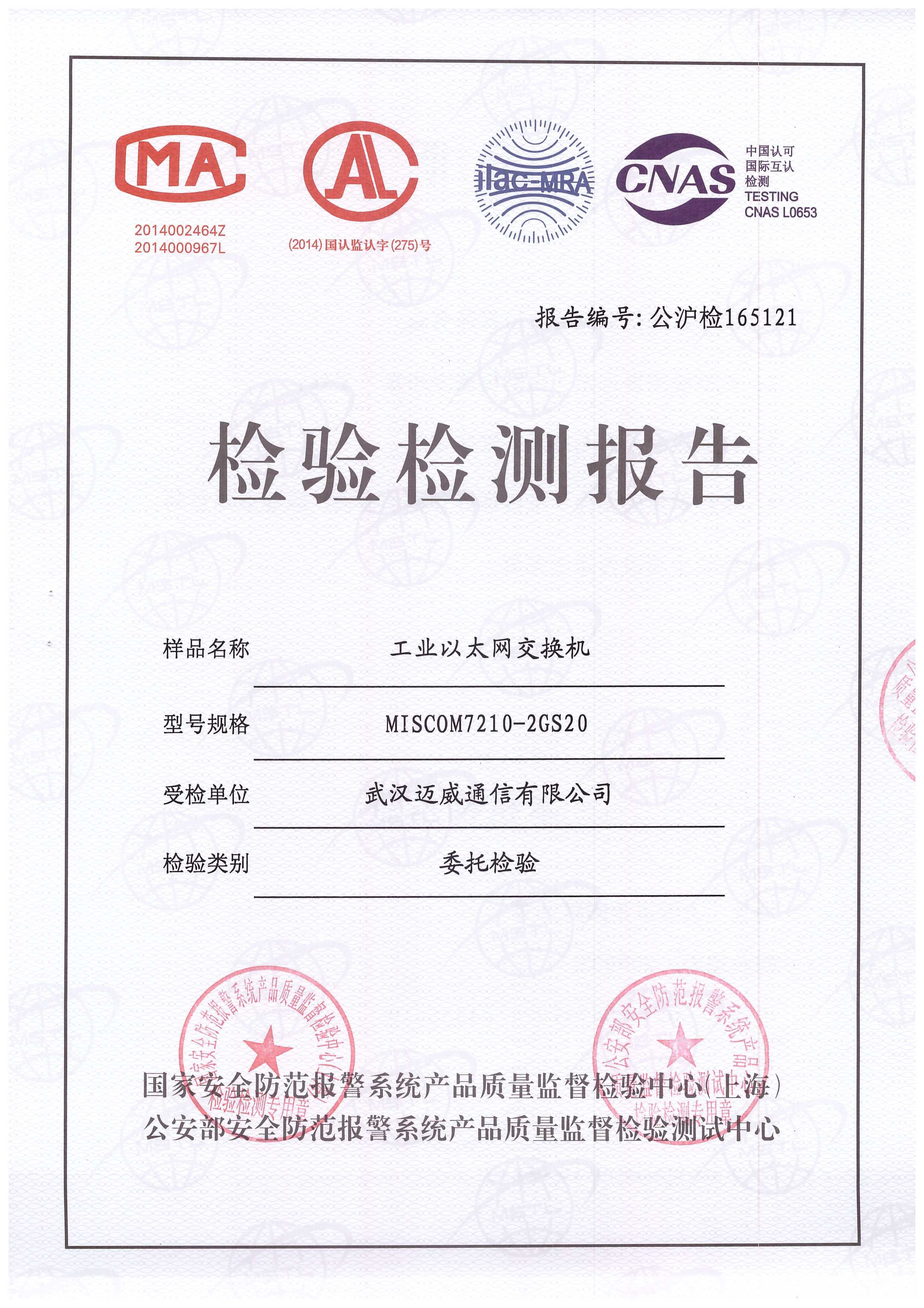 近日,我公司研制生产的MISCOM7210工业级千兆交换机在公安部安全防范报警系统产品质量监督检验测试中心经过长期严格的检验测试下,通过了所有检验标准。由于交换机在测试过程中性能卓越、表现优异,特被公安部分级判定为一级交换机。