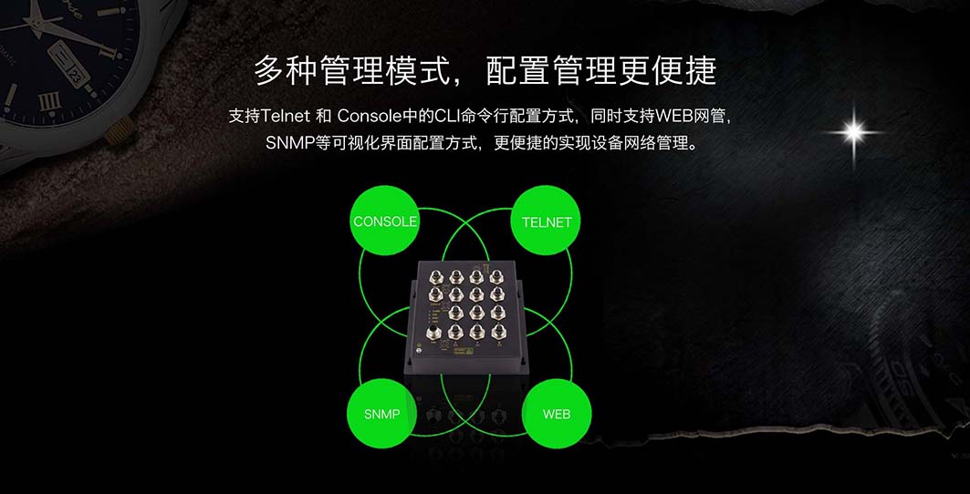 支持CLI,Telnet,WEB管理方式,RMON