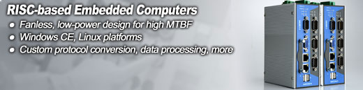 基于RISC架构、立即可用的嵌入式工业计算机,配备8个串口,2个网口,USB,PCMCIA和Comp