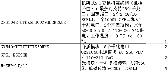 GRS1042-6T6ZSHH00Z9HHSE2A工业交换机主机。二层网管型,19英寸机架安装,220VAC双电源。6个千兆SFP插槽+6个千兆电口+2个介质模块插槽。