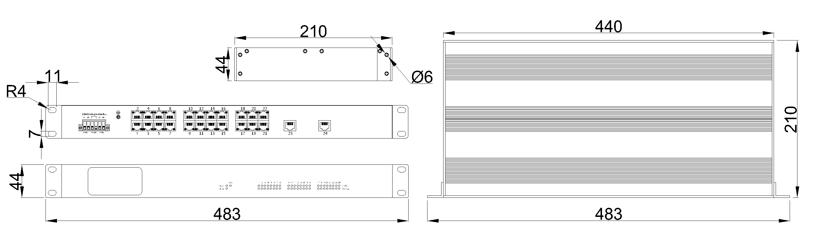 MIEN3024-4F/8F/12F/16F/24F:483mm×44mm×330mm