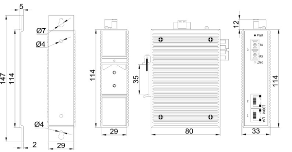 | 尺寸:114mm×80mm×33mm(长×高×宽)(不含卡轨组件尺寸) |