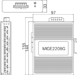 MIGE2208G是8个千兆电口的高性能非网管型工业级以太网交换机。该产品包含的8个千兆电口支持10/100/1000M自适应,这适用于大带宽需求的应用。本产品具有电源故障报警输出功能,利于现场工程师及时发现和处理故障。