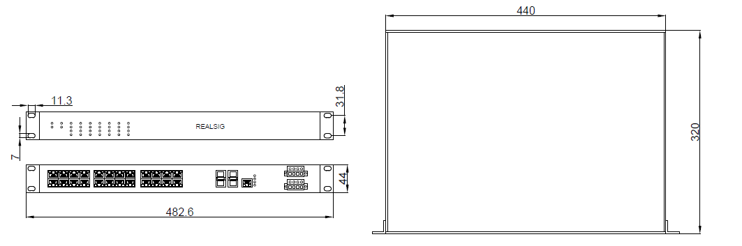 440mm*320mm*44mm 标准19英寸1U |