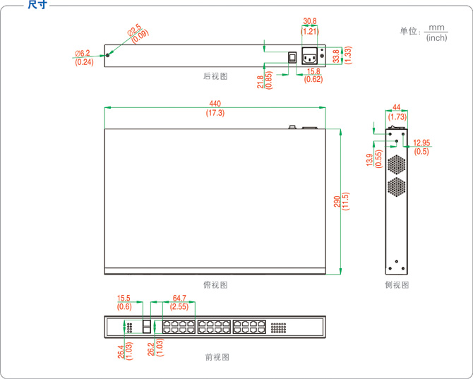 ● 遵循IEEE802.3,IEEE802.3u,IEEE802.3x,802.3z,802.3af/at以太网标准