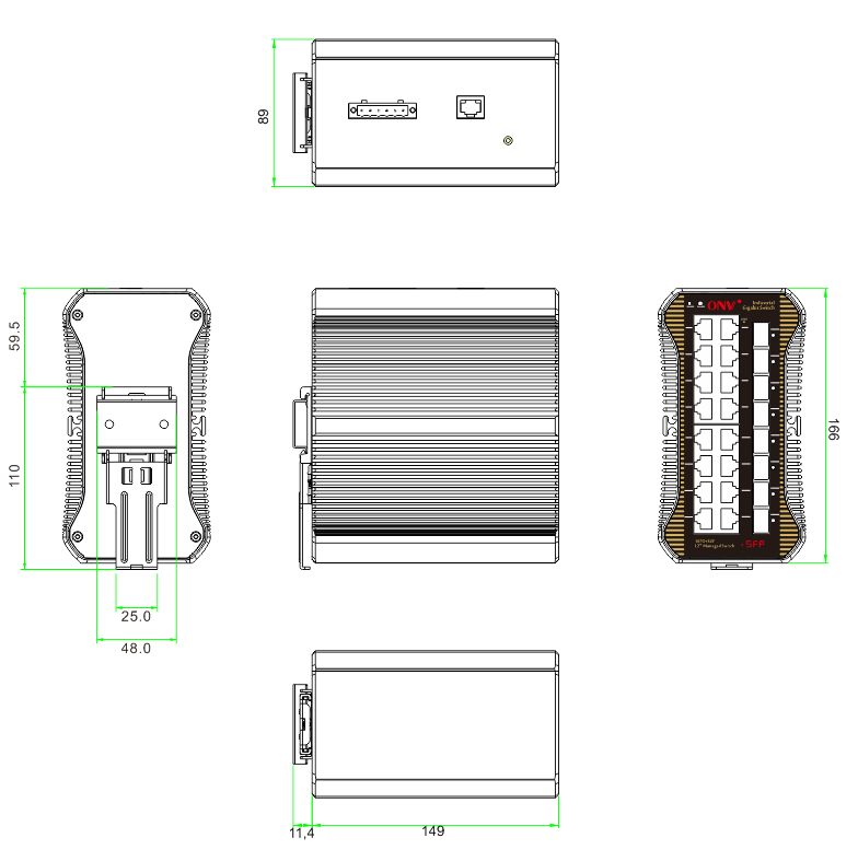 ◇ 导轨式工业级系列产品默认不配置电源,需要独立购买,建议选用ONV自主研发的电源,高冗余设计,提供长久稳定电力输出。