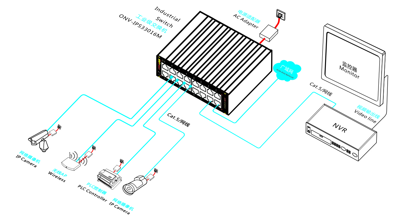 根据实际应用需要,通过Web、CLI、SNMP、Telnet等网管方式,进行端口管理,路由地址管理,端口流量控制,VLAN划分,IGMP、安全策略等多种应用业务配置。满足各种工业以太网应用环境的需求,适合智能交通、轨道交通、电力行业、矿业开采、石油、海运、冶金及绿色能源建设等工业场景组建经济高效、稳定、可靠的通信网络。