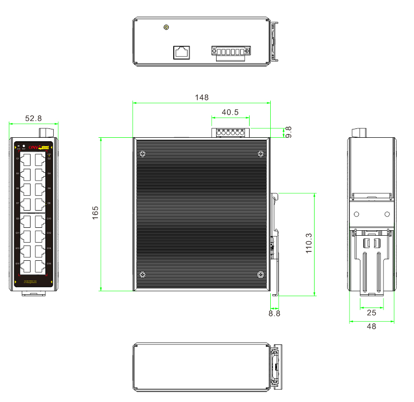 ◇ 导轨式工业级系列产品默认不配置电源,需要独立购买,建议选用ONV自主研发的电源,高冗余设计,提供长久稳定电力输出。