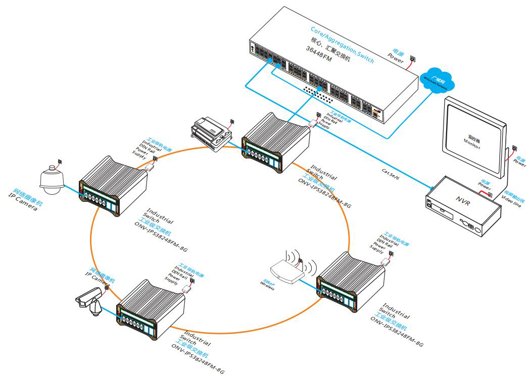 ONV-IPS38248FM-8G工业级系列产品,完全遵循工业产品设计与用料,外壳采用铝合金增强散热效能,具备极佳的工业现场环境适应性(包含机械稳定性、气候环境适应性、电磁环境适应性等)、防护等级达到IP40、支持双冗余供电、低功耗无风扇散热技术、MTBF 平均无故障工作时间可达35 年、超长5 年质保。适合智能交通、轨道交通、电力行业、矿业开采、石油、海运、冶金及绿色能源建设等工业场景组建经济高效、稳定、可靠的通信网络。