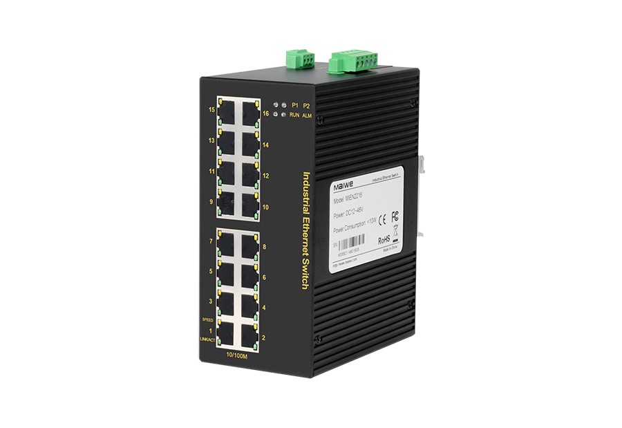 IEEE标准 802.3、802.3u、802.3x等 交换方式 存储转发 背板带宽 8.8Gbps RJ45端口 16个10Base-T/100Base-TX 电口参数 物理接口:RJ45带屏蔽,IEEE802.3标准 RJ45端口: 10/100Base-TX(百兆)支持自动协商功能 传输距离:<100米 光口参数 发光功率:>-12dBm(单模) >-17dBm(多模) 收光灵敏度:<-38dBm(单模) <-35dBm(多模) 波长:1310nm(单模) 1550nm(单模) 1310 nm(多模) 连接器类型:SC/FC/ST 传输距离:20~80Km(单模) <5Km(多模) 传输速率:125Mbps 电源参数 输入电压: 直流电源:DC12~48V、DC48V(36~72V) 交流电源:AD220V(AC85~264V/DC110~370V) 输入功耗:7W(MAX) 过流保护:内置 机械参数 物理尺寸(高×宽×深):156mm×72mm×120mm 安装方式:标准DIN卡轨式 散热形式:铝合金单肋形机箱表面散热,无风机 机壳防护:IP40 工作环境 工作温度:-40℃~+85℃ 存储温度:-40℃~+85℃ 湿度:5%~95%(无凝露) EMC标准 EN61000-4-2防静电(ESD):±8kV接触放电,±15kV空气放电 EN61000-4-3电磁场:10V/m(80-1000MHz) EN61000-4-6防传导:3V(10kHz~150 kHz),10V(150kHz~80 MHz) EN55022:EN55022 Class A 型号 百兆光口 百兆电口 电源 MIEN2216 / 16 双路DC12~48V MIEN2216-DC48 / 16 双路DC48V MIEN2216-AD220 / 16 单路AC/DC220V |